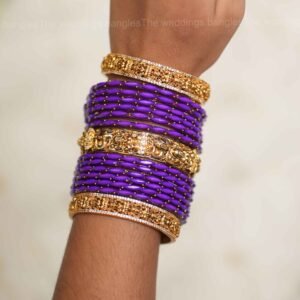 1 Dozen Premium PURPLE Glass Bangles. For 2 Hands – 4 Side Bangles – Divine Lakshmi Temple Bangles. 2 Middle Bangle – Lakshmi Vilas Temple Bangles. 2 Dozen Premium PURPLE Glass Bangles.