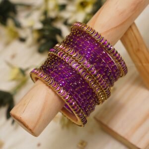 2 dozen raindrop glass bangles in royal orchid purple. Customization Available on Request