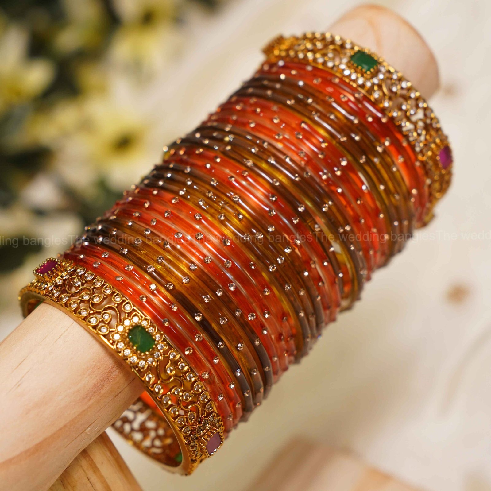 2 dozen glass bangles – Glossy burnt orange & brown single stone bangles. - Customization Available.