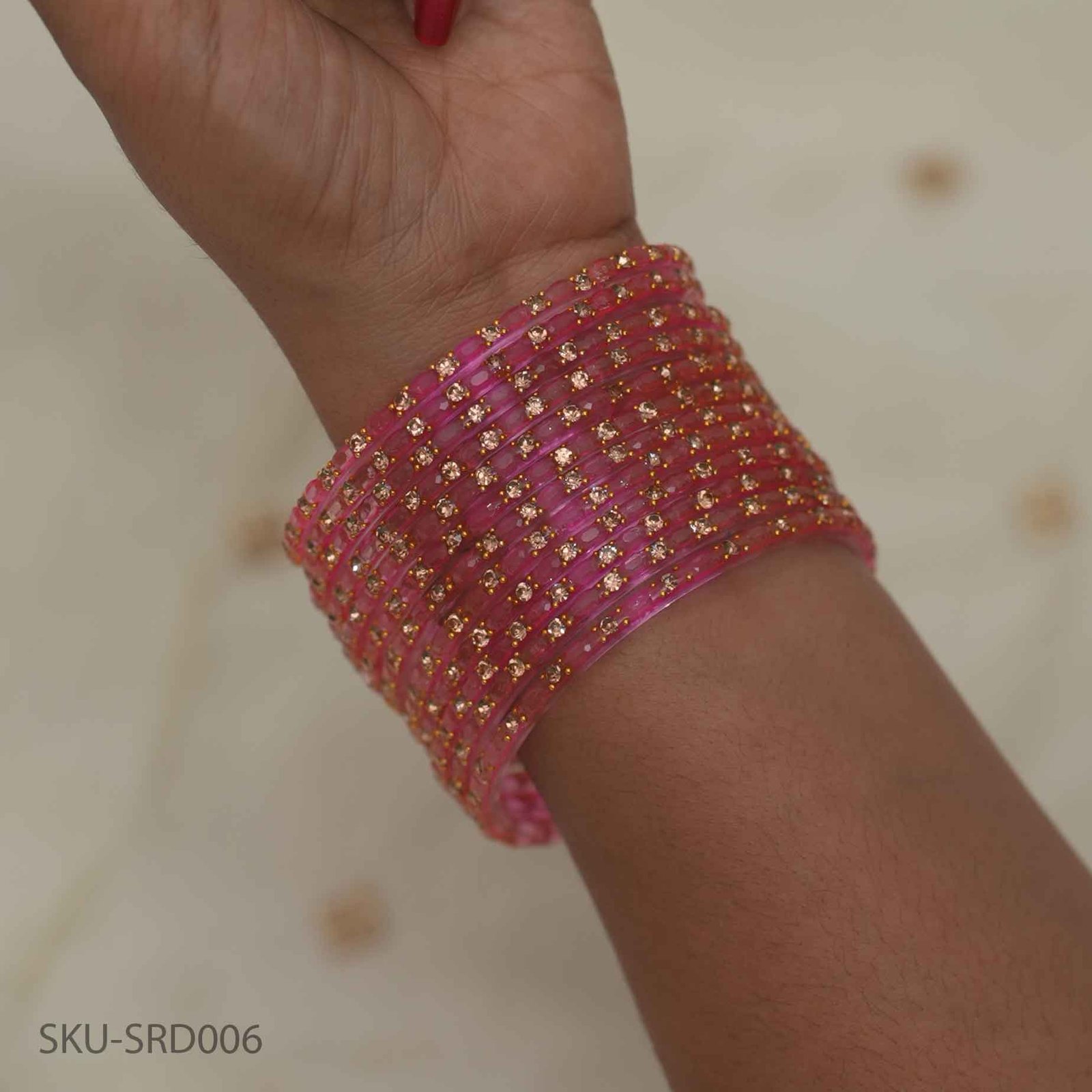 Soft and graceful, these pastel pink square raindrop bangles add a subtle sparkle, making them perfect for daytime functions and pastel-themed outfits.