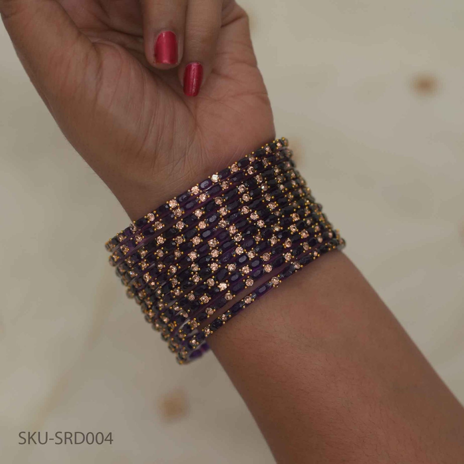 Rich and elegant, these purple square raindrop bangles bring a regal touch to your look. With dazzling golden highlights, they’re ideal for festive nights and wedding celebrations.