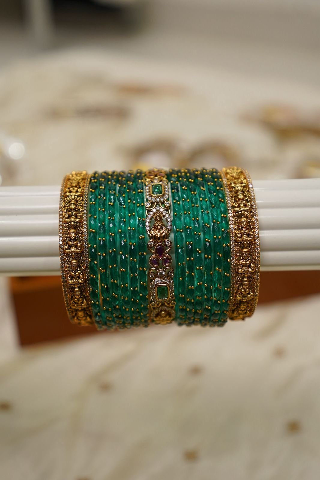 Swarnaratna Lakshmi Bottle Green Temple Bangle Set
