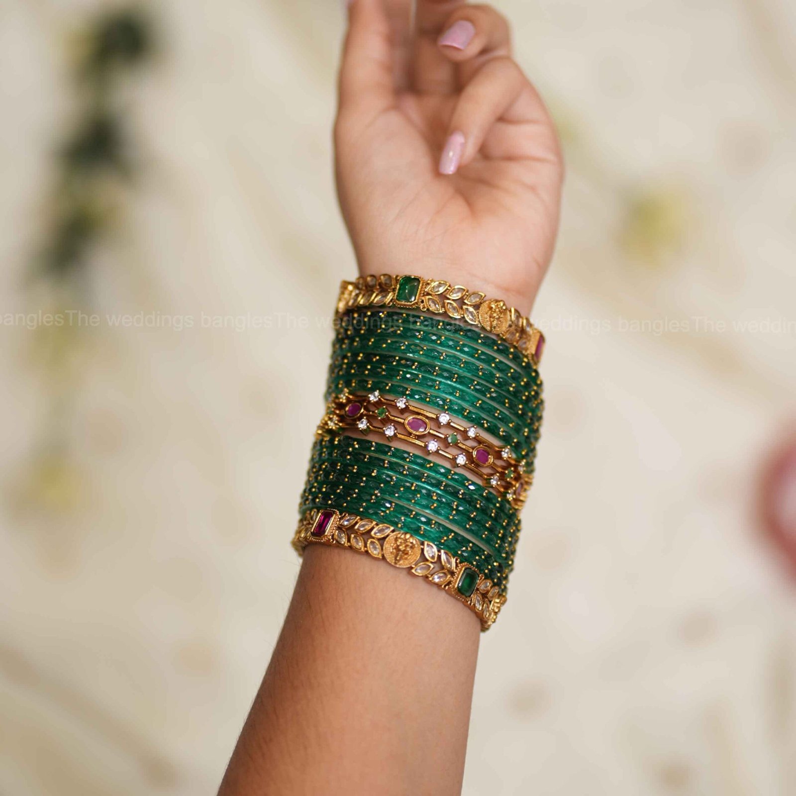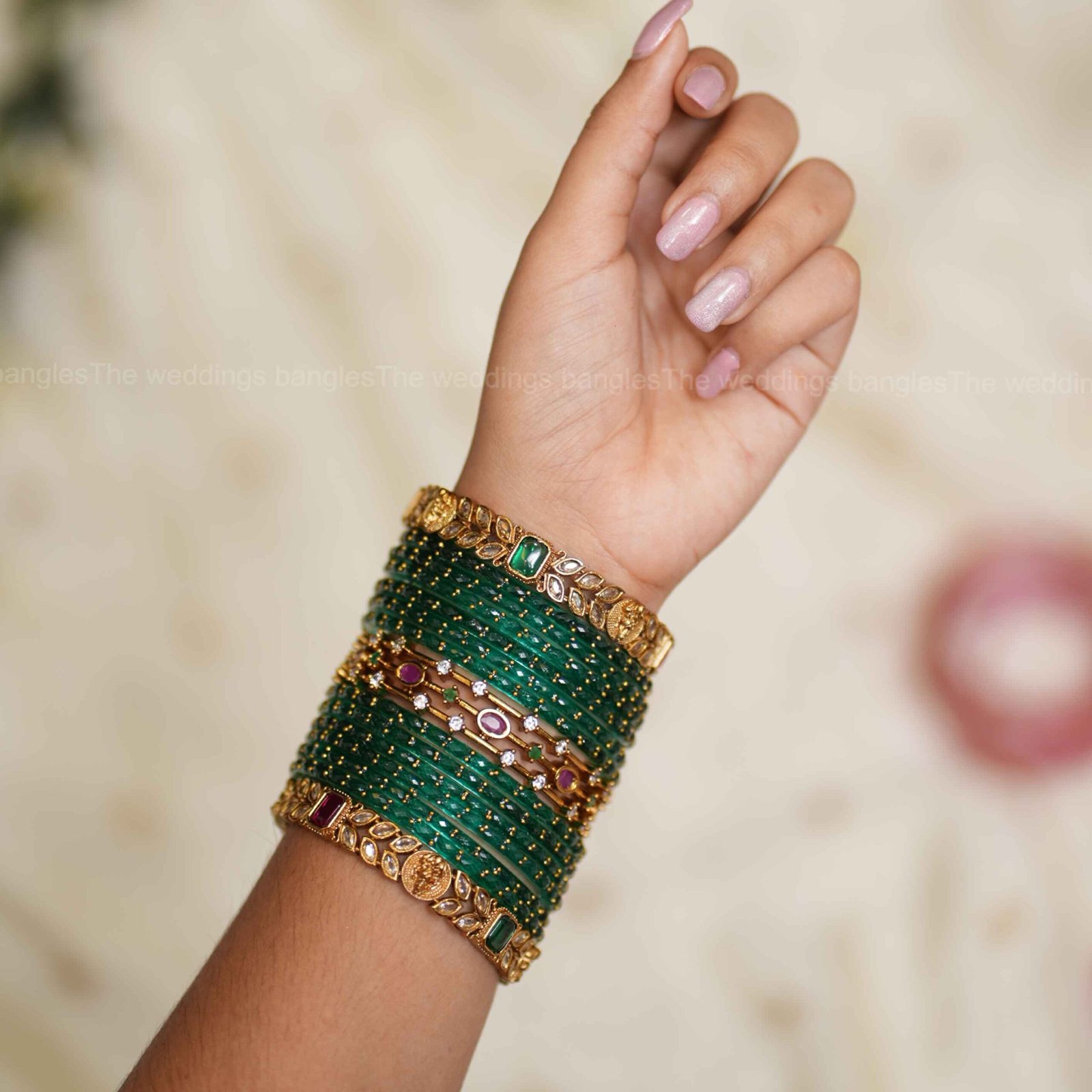 Vanya GREEN Glow & Elegant Gold Stone Bangle Set